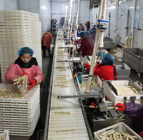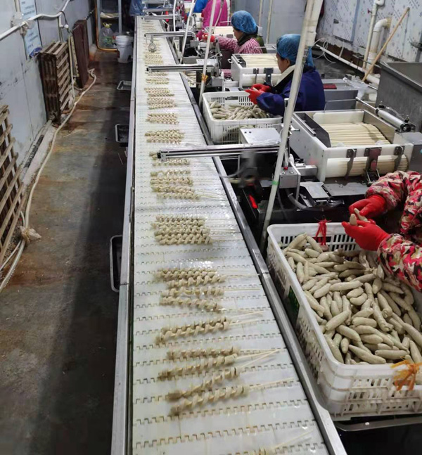 該設備自動完成面筋的穿串,旋切,拉串、輸送等程序,實現(xiàn)了從進料到產(chǎn)品真正意義上的全自動化生產(chǎn)過程。大幅度減少操作工人,提高生產(chǎn)效率和降低人工成本。且面筋卷生產(chǎn)為仿手工纏繞制作,全過程無擠壓、不使用磨具,產(chǎn)品完全保留了手工面筋卷的外形和口感。設備管理簡單、運行穩(wěn)定、無故障,可24小時連續(xù)生產(chǎn)。